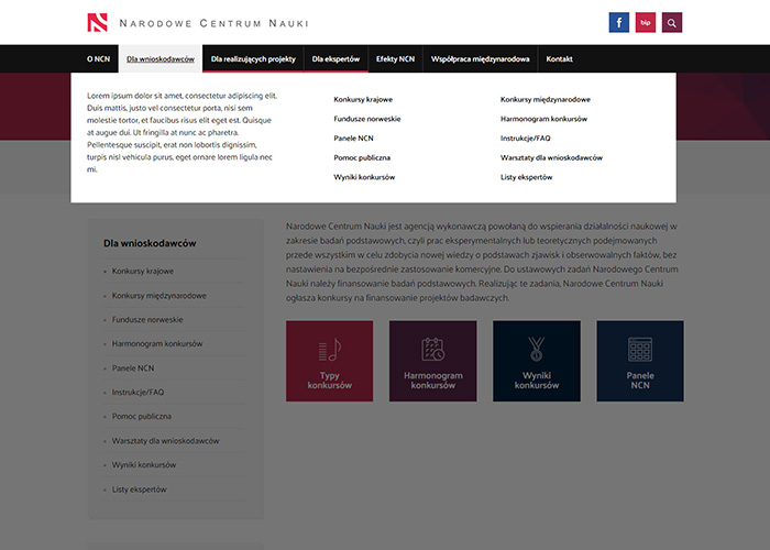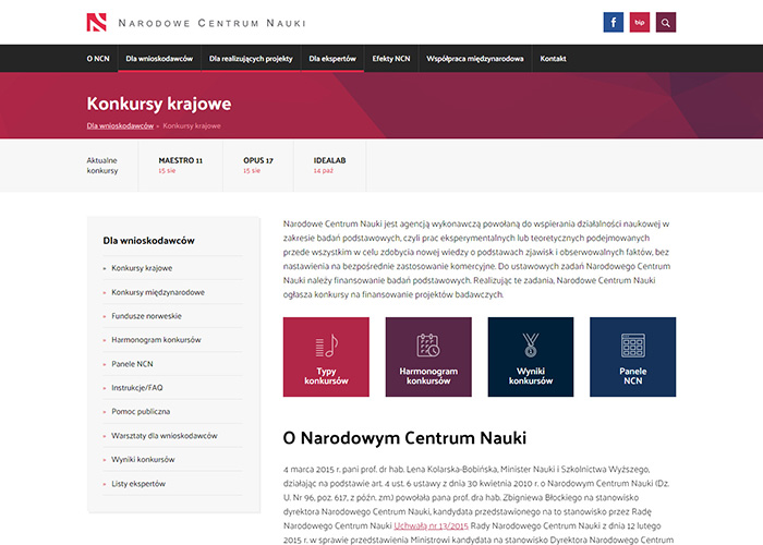 Except the website itself, the biggest ongoing project is full-text search engine projekty.ncn.gov.pl for every project founded by the Centre. I had to design, code, run servers and develop a project. I use Elasticsearch (ELK) + PHP for this. It was running on AWS firstly, which was quite expensive so after a while I needed to configure and run VPS server, successfully.